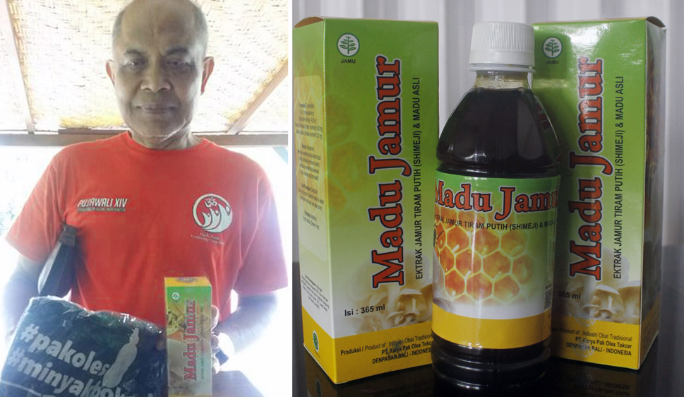 Nyoman Sutama (56 tahun), salah seorang pelanggan setia Produk Ramuan Pak Oles secara rutin mengkonsumsi madu jamur untuk menjaga stamina tubuh agar tetap prima dalam menjalani aktivitas keseharian.