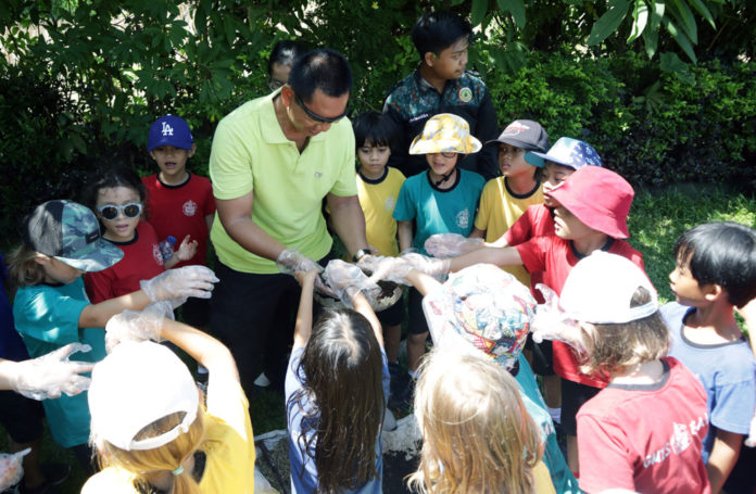 Sebanyak 27 murid kelas II dari SD Gandhi Memorial International School (GMIS) Bali mengikuti kegiatan pembelajaran luar kelas di Pak Oles Green School (POGS), Jalan Waribang, Kesiman, Denpasar Timur, pada Jumat (26/10). Kegiatan ini bertujuan mengenalkan jenis-jenis tanah serta pentingnya tanah bagi kehidupan dan lingkungan.