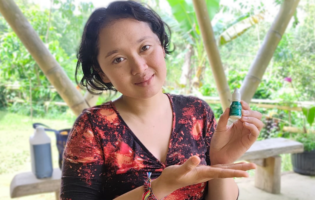Ni Putu Melani menunjukkan produk Minyak Oles Bokashi kemasan 12 ml.